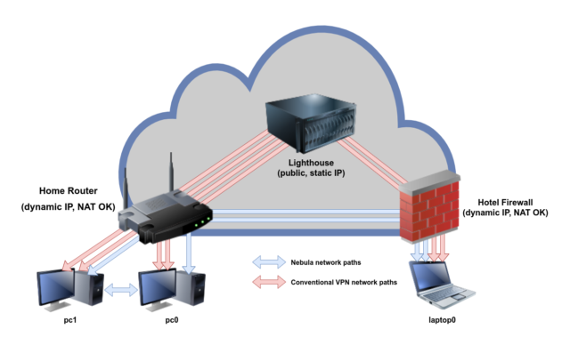 Let’s grab another tool we’ll use today: Nebula. Nebula is an extremely simple way to make a mesh overlay VPN where any two points on the network will always be able to communicate provided they can reach an intermediary host. More on this later.